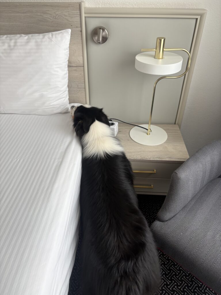 Un chien entraîné inspecte un appartement de trois pièces en une dizaine de minutes.